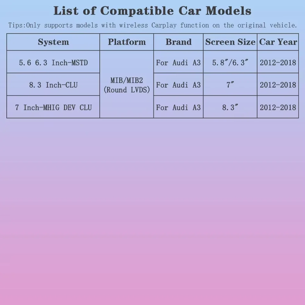 10.25 colių belaidis CarPlay / Android Auto multimedijos ekranas Audi A3 8V (2012–2020)