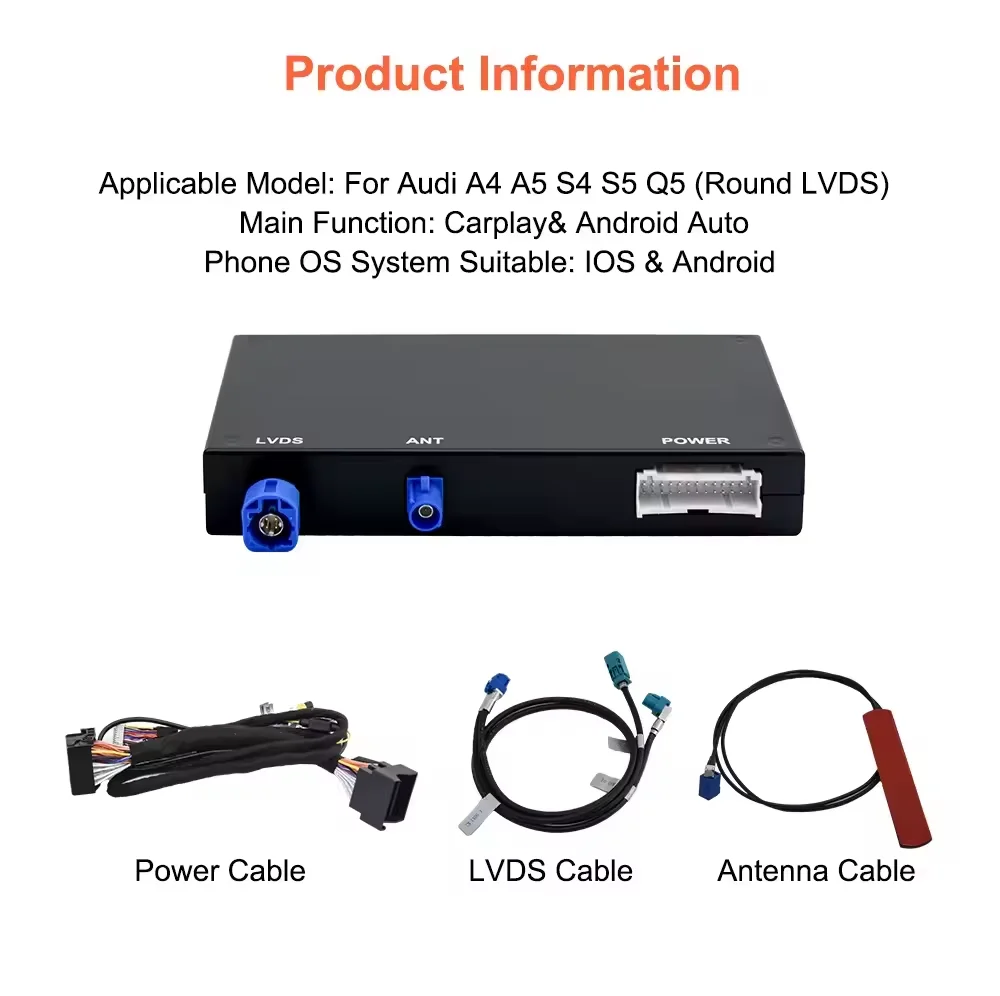 Belaidis „CarPlay“ / „Android Auto“ dekoderis Audi A4 B8, A5, Q5, S5 (2009–2015 MMI 3G)