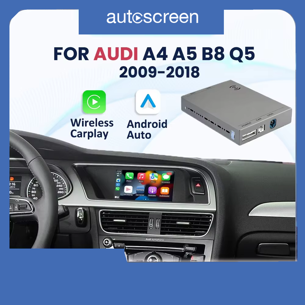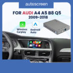 | Audi A4 B8, A5, Q5, S5 MMI 2G 2009–2018 | • Palaiko CarPlay, Android Auto, Mirror Link, CarLife, USB atmintines• Valdymas per vairo mygtukus, lietimui jautrų ekraną ir balsu („Hey Siri…“)• Pilnai reguliuojamas garso EQ, aukščiausia garso kokybė• Galimybė prijungti galines ir priekinės PAL, NTSC ir CVBS AHD 720P kameras• Palaiko originalias automobilio funkcijas• GPS navigacijos žemėlapiai palaikomi• Paprastas montavimas („plug & play“) |