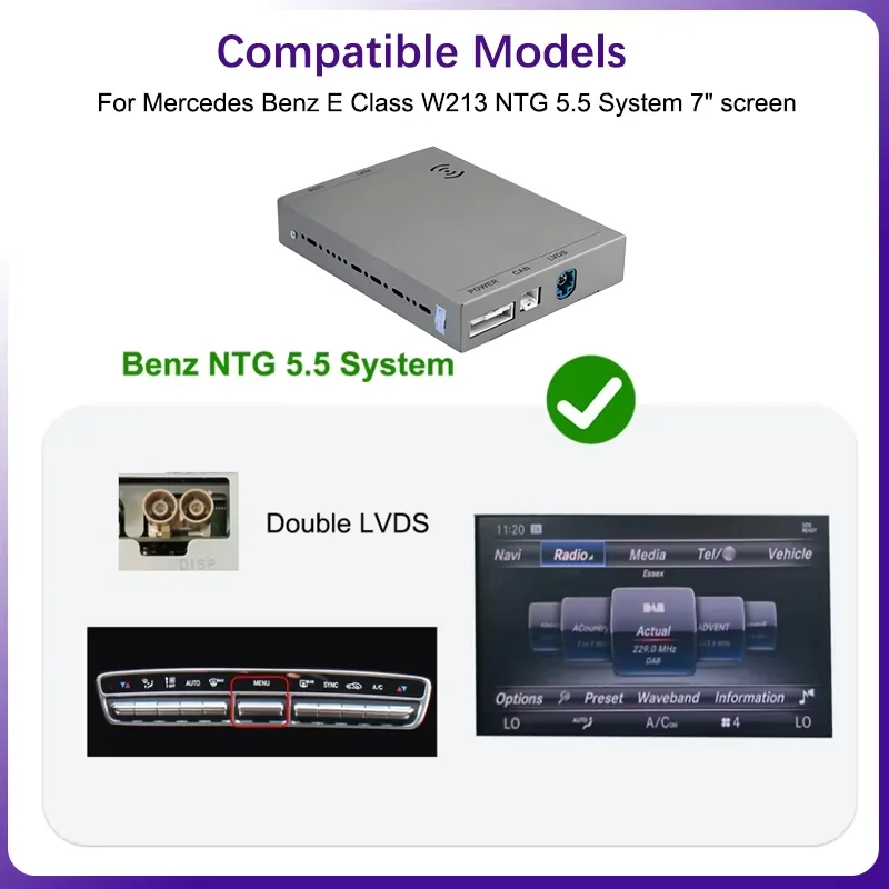 | Suderinamumas | Mercedes-Benz E klasė W213 (2016–2020, NTG 5.5) | Kilmė | Kinija |