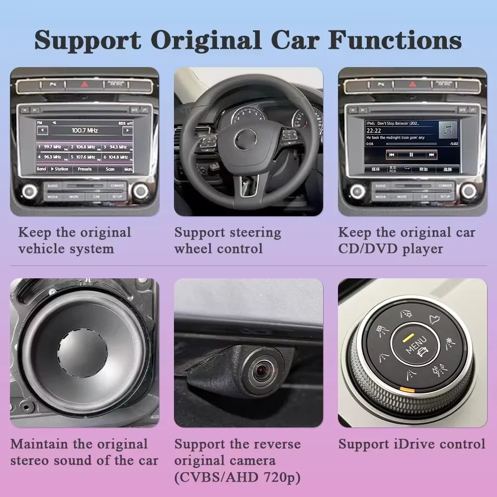 • 100 % OEM valdymo išsaugojimas – vairaračio mygtukai, rankenėlės valdymas ir lietimui jautrus ekranas lieka visiškai funkcionalūs