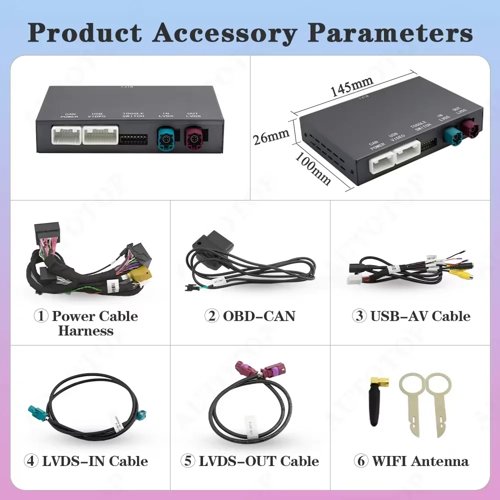 • Gamintojo kamerų palaikymas – plug-and-play prijungimas prie originalių atbulinės eigos kamerų ir parkavimo jutiklių